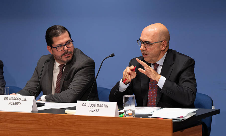 José Martín y Pérez de Nanclares expuso la diversidad que tiene lugar en el Tribunal General de la Unión Europea, donde confluyen 24 lenguas. “Tenemos más de dos mil trabajadores y más de la mitad son intérpretes y traductores”, dijo, y mencionó que identifica amenazas de tres tipos: políticas, económicas y de seguridad. Sobre las primeras, sentenció que los sistemas democráticos se ven amenazados en sus valores fundamentales; en las económicas, señaló que el poder de gigantes tecnológicos como Google, Meta o Amazon pone en riesgo la vida privada y pública al distorsionar las reglas básicas del mercado, y en cuanto a la seguridad dijo que es grave que algunas violaciones de derechos humanos están siendo aceptadas y validadas socialmente. Ante esto, la respuesta es “desarrollar jurisprudencias y mejores normas, aunque estas sirvan de muy poco si no se aplican”. Finalmente, aseguró que es importante en todo momento preservar la dignidad de las personas por igual porque “un Estado de Derecho no se puede construir sobre la base del nacionalismo, sino que debe ser para todas las personas”.